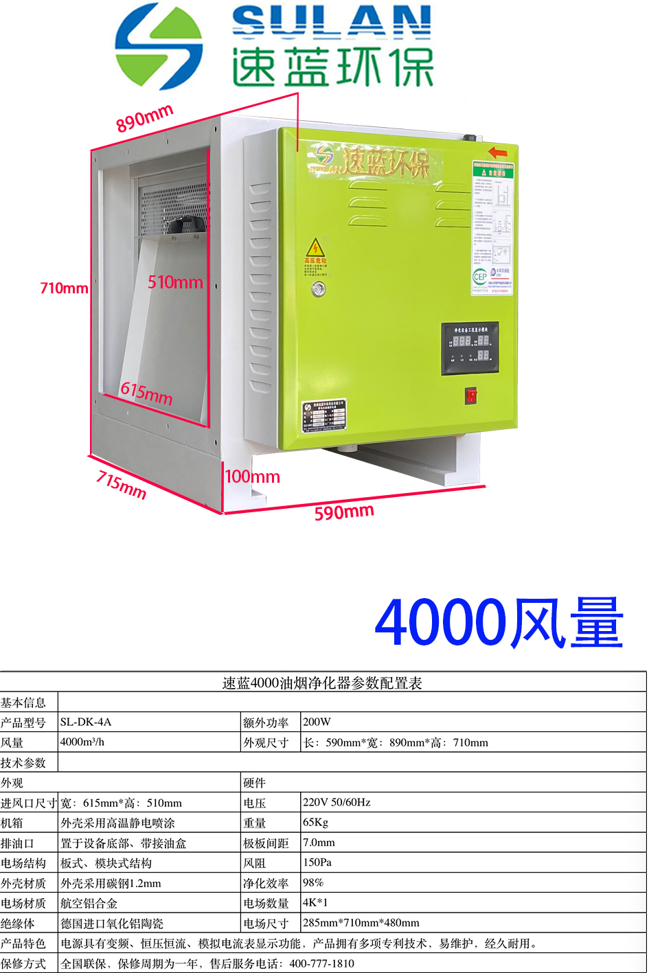 4000風(fēng)量低空油煙凈化器-速藍環(huán)保類別:低空油煙凈化器